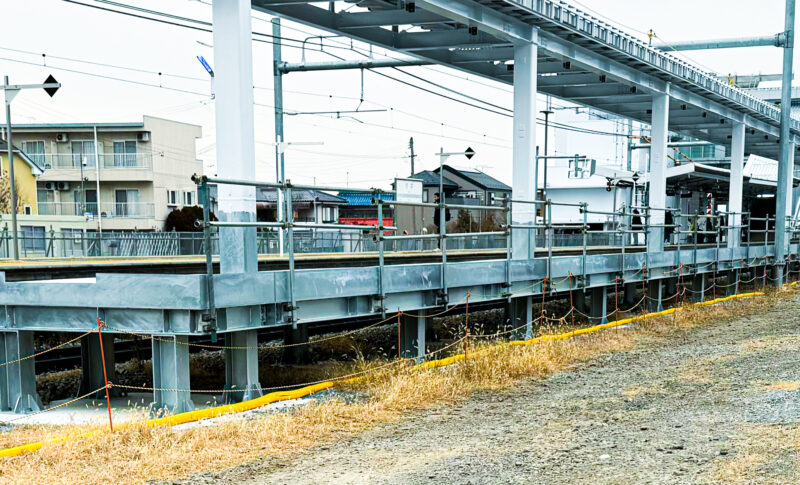 JR村井駅のホーム桁(鉄骨梁)の製作を担当しました。鉄道インフラに求められる高い精度と強度基準を満たす施工を実現しています。